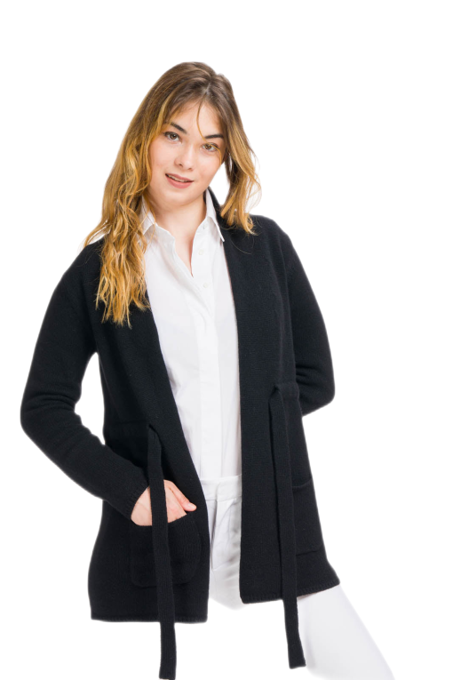 Cardigan Nero Lungo Donna